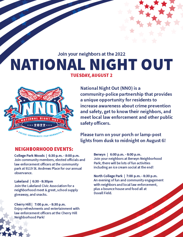Councilmember Kabir thanked everyone for coming out to various events planned for National Night out on August 2. He also acknowledged staff for their assistance in bringing supplies.