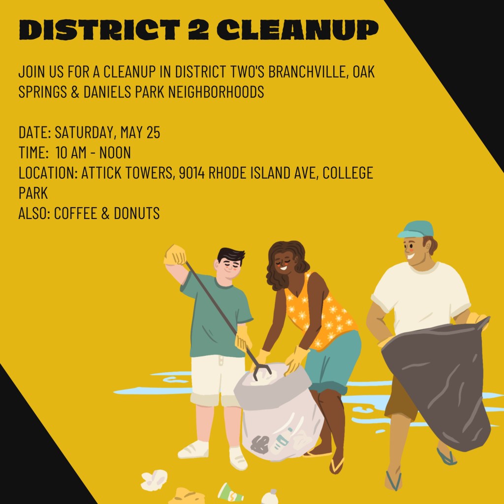 We want to thank the BDCA and Lakeland Civic Association (LCA) for hosting a joint community clean-up on Saturday, June 1 from 10 am – noon (Rain Date, 6/2). If you can’t make June 1st, join us on Saturday, May 25 for a clean-up in Branchville, Oak Springs and Daniels Park from 10 am to noon. We’ll meet in front of Attick Towers at 9014 Rhode Island Avenue.