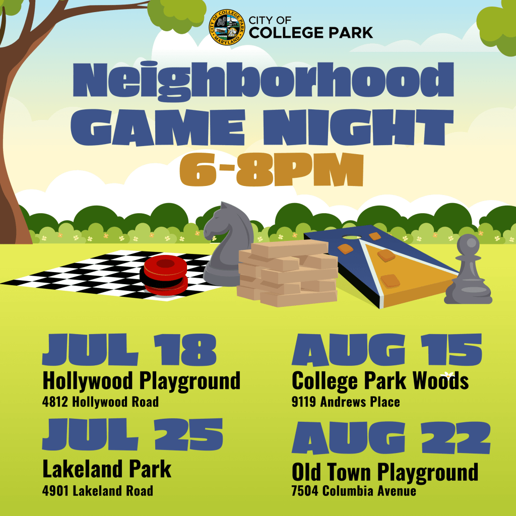 Neighborhood Game Night in Lakeland Park Thursday, July 25th