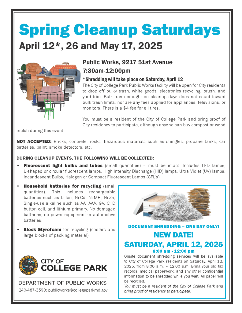 Mr. Young said the City’s Memorial Day event will be held on Monday, May 26 starting at 11am on the corner of Baltimore Ave and Greenbelt Road.