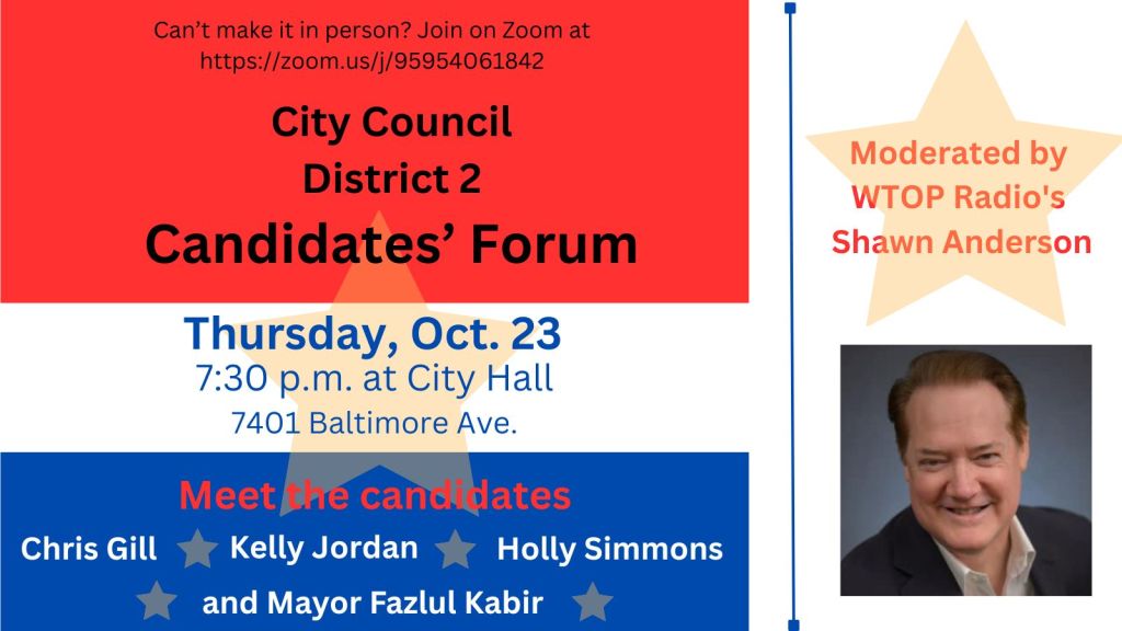 Mr. Young said that the final day of the city’s Fall Cleanup will be on Saturday, October 25. He said residents can drop off bulky trash and have documents shredded from 8am – 12pm. Mr. Young gave special thanks for UMD Police, Prince George’s County Police and College Park Staff for their presence and assistance with College Park Day. He acknowledged the city’s receipt of Certificate for Excellence in Financial Reporting from the Government Finance Officers Association (GFOA) for the city budget submitted in May 2024. Mr. Young said that elections for Mayor and Council will take place on Election Day, November 4, from 8am – 8pm, and early voting will be at held at David Hall on Sunday, November 2 from 11am – 4pm. Residents must be 16 years of age by November 4 to be eligible to vote. He said the deadline to register to vote in College Park was October 20.